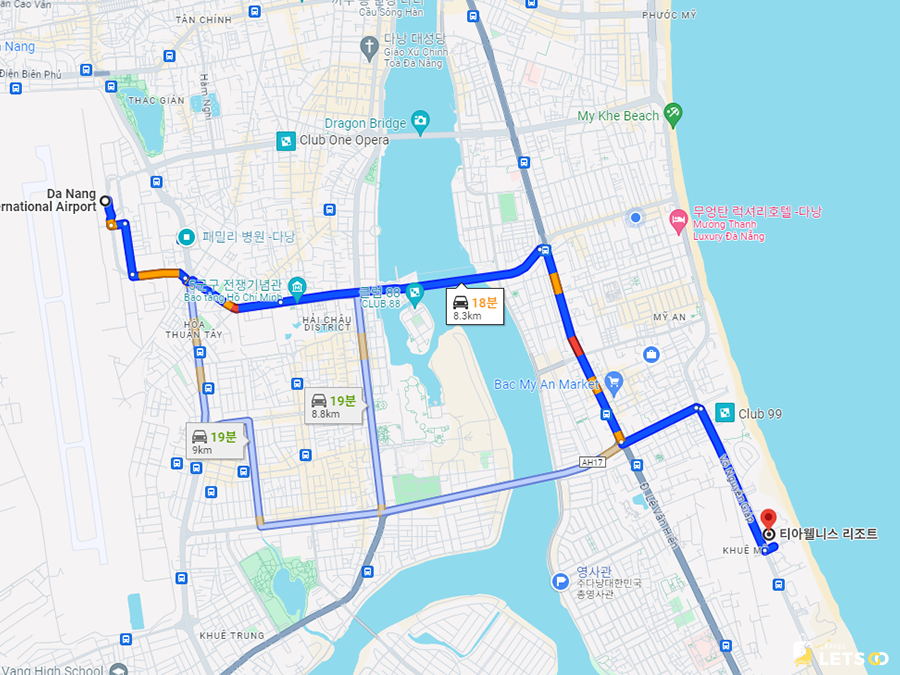 다낭 국제공항에서 차로 약 15분, 다낭 시내에서