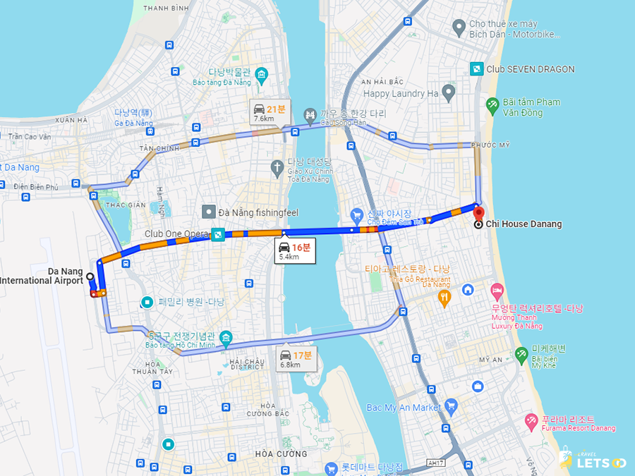 다낭공항에서 15분 거리!