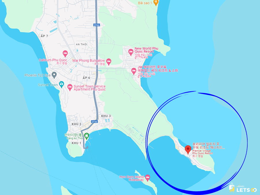 푸꾸옥 남쪽 끝자락에 위치해서 조용하고 아름다운 곳이야.