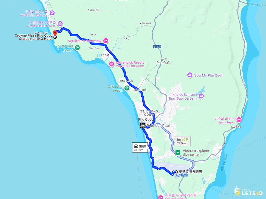 푸꾸옥 국제공항에서 호텔까지 이동하는 시간은