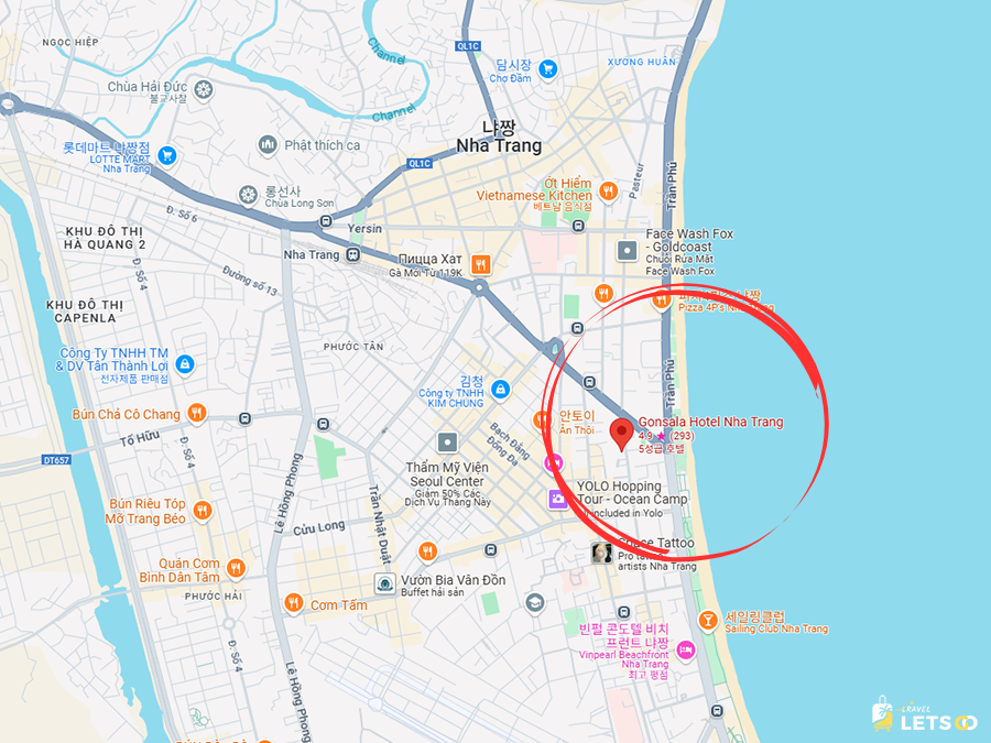 걸어서 5분 거리에 트람 후옹 타워와 나트랑 야시장이 있어 저녁에 산책하며 야경을 구경하거나 쇼핑을 즐기기에도 좋답니다.