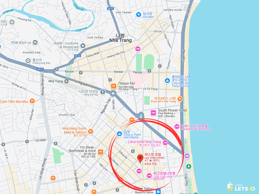 또한, 롱선탑, 포나가르챰 타워 등 나트랑의 대표적인 관광지까지도 비교적 가까운 거리에 위치해 있어 이동하는 데 부담이 없습니다.
