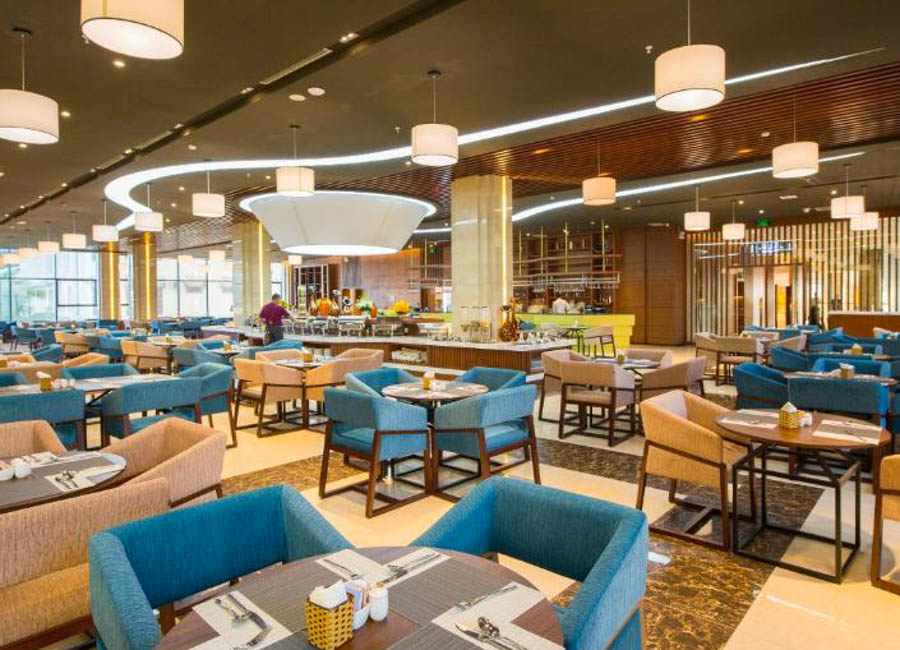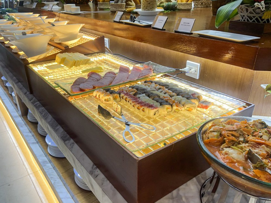 조식 뷔페는 다양한 종류의 음식을 제공하며,