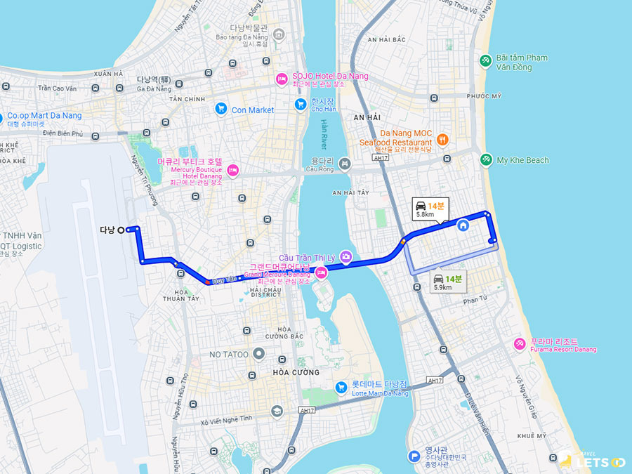 뿐만 아니라, 다낭 시내와도 가까워서 롯데마트, 한시장 등 주요 관광지로의 접근성도 뛰어나요.