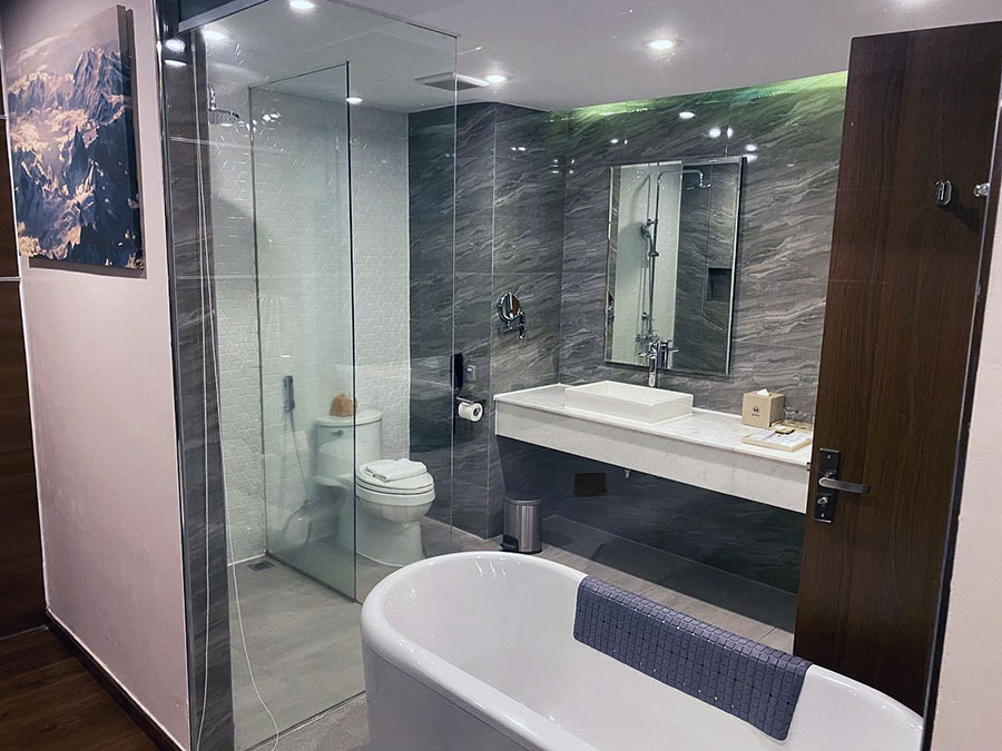 객실에는 편안한 침대와 소파, TV, 냉장고, 커피포트 등 필요한 모든 것이 갖춰져 있었고, 특히 좋았던 점은 넓고 깨끗한 욕실이었어요.