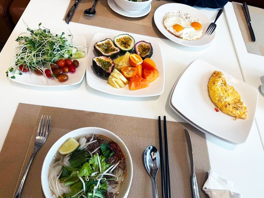쌀국수, 오믈렛, 빵, 과일, 커피 등 알차게 구성되어 있었어요.