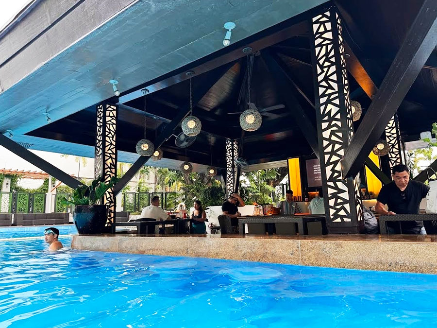 1층 야외에 있는 수영장은 생각보다 넓고 사람도 많지 않아서 여유롭게 즐길 수 있었어요.