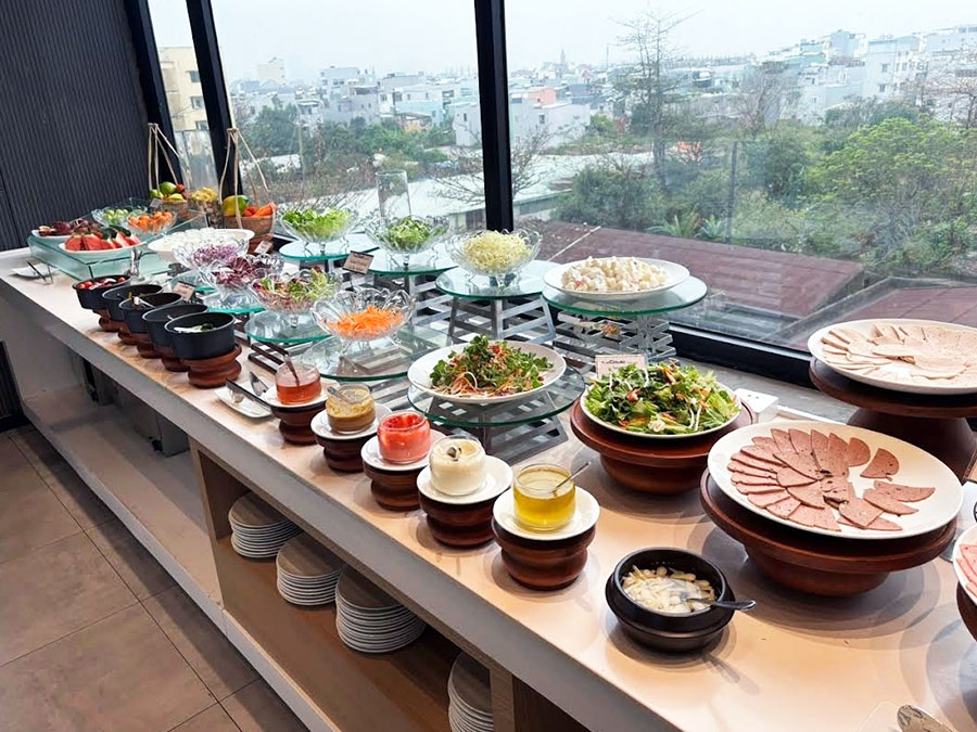 조식은 1층 레스토랑에서 먹었고, 베트남 현지식 + 간단한 서양식이 함께 나와요.