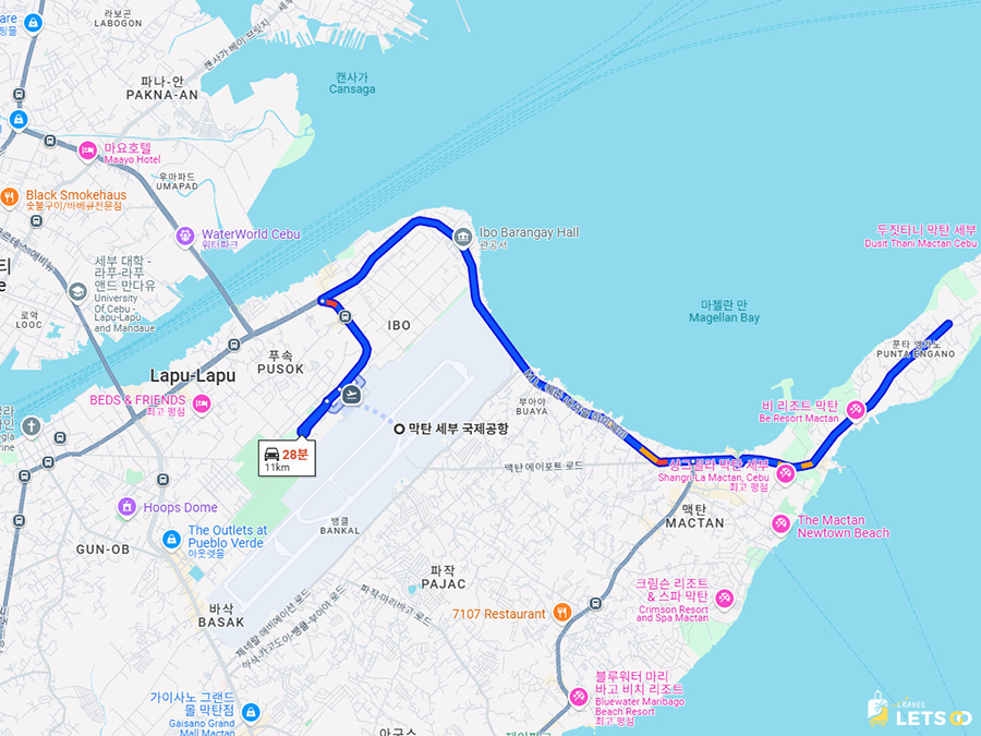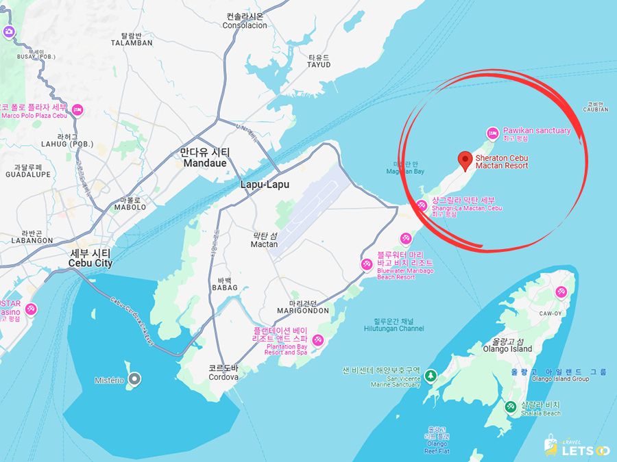 쉐라톤 세부 막탄 리조트는 막탄 세부 국제공항에서 차량으로 약 20분 정도 거리에 있어요. 위치적으로는 막탄의 북동쪽, 조용하고 여유로운 바다 앞에 딱 자리 잡고 있어서 정말 힐링하기 딱 좋더라고요.