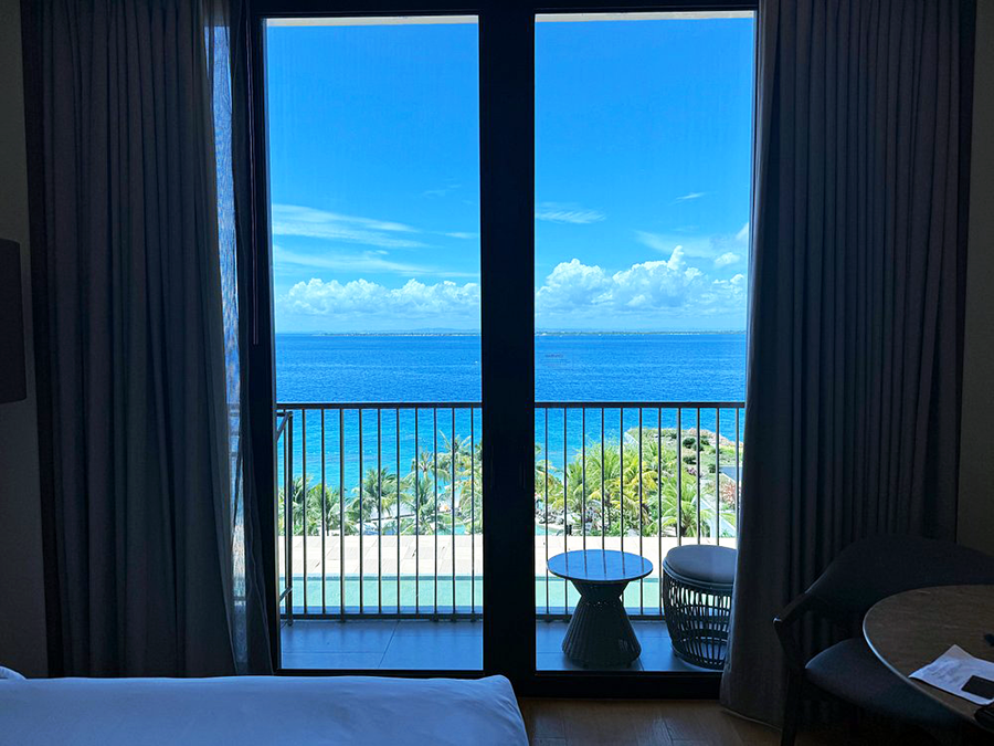제가 묵은 룸은 오션뷰 디럭스룸이었는데, 통유리 창 너머로 보이는 막탄 바다가 진짜…