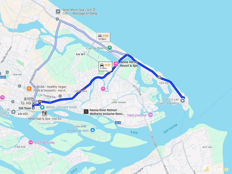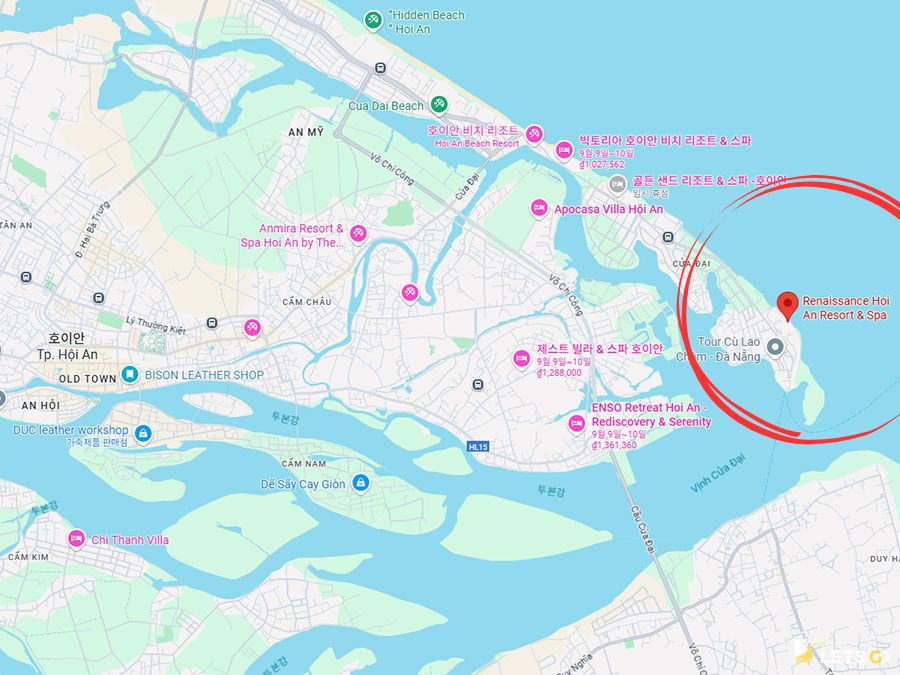 르네상스 호이안 리조트는 호이안 올드타운에서 차로 약 15분 거리에 있어요.