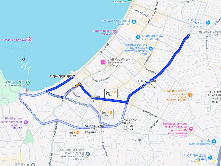 걸어서 센트럴 파타야 몰(Central Pattaya)이나 비치로드, 파타야 야시장까지 10~15분 정도?