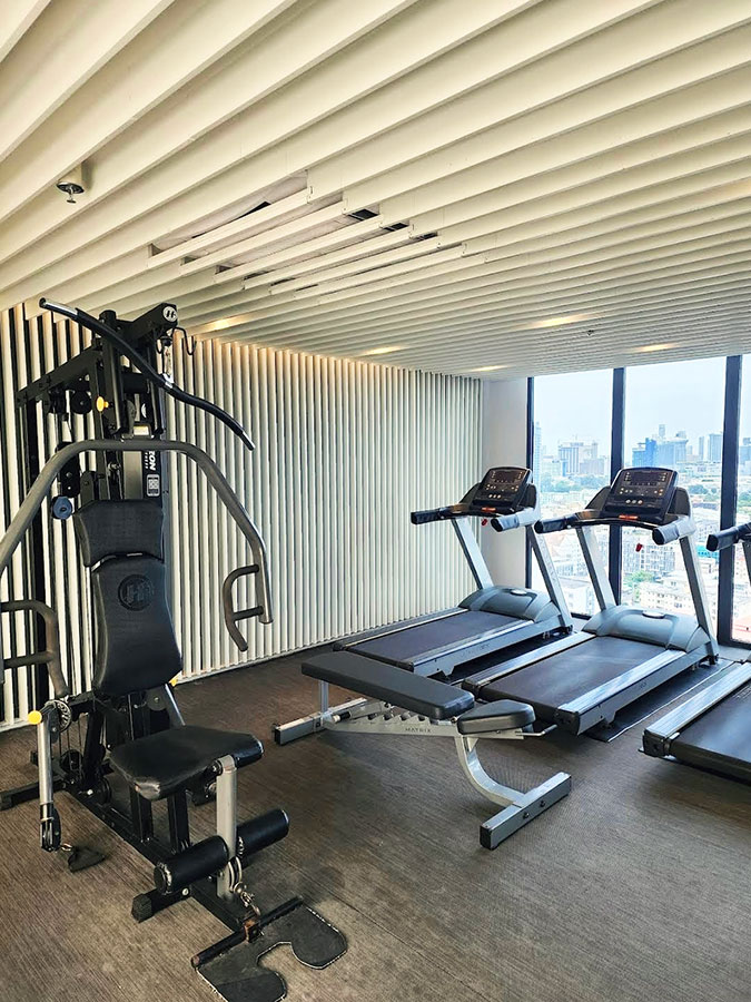 러닝머신, 사이클, 웨이트 머신도 잘 갖춰져 있고, 창밖으로 시티뷰가 보여서 운동하면서 지루하지 않았어요.