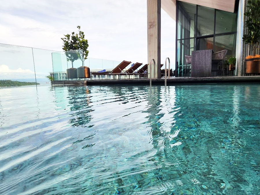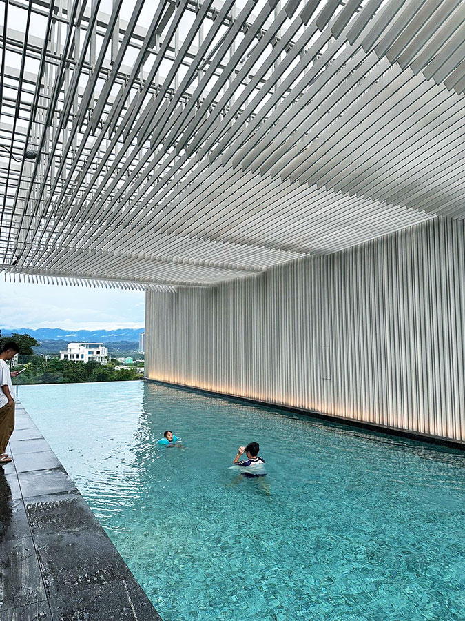 하얏트 센트릭 코타키나발루의 하이라이트는 바로 루프탑 수영장이에요! 옥상에 위치해 있어서 코타키나발루의 아름다운 바다와 석양을 한눈에 보면서 수영을 즐길 수 있답니다. 정말 감동 그 자체였어요. 🌅
