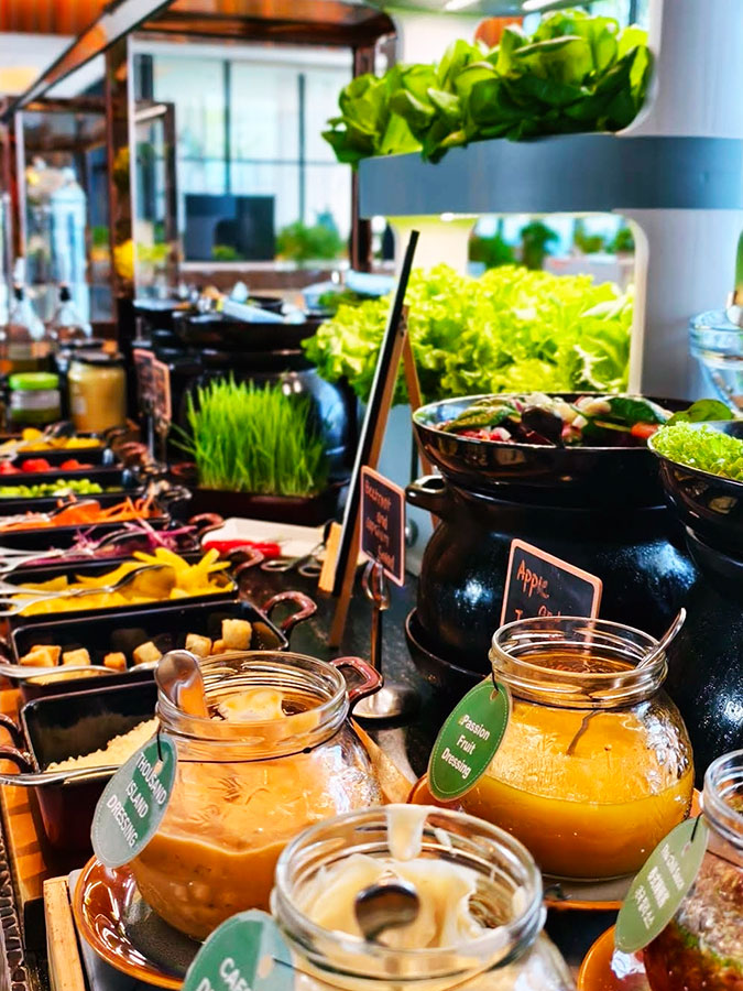 특히 신선한 과일과 볶음밥, 해산물 요리가 인기가 많았고, 직접 주문 가능한 오믈렛 코너도 있었어요. 커피와 주스, 다양한 빵도 있어서 아침부터 든든하게 먹을 수 있었답니다.
