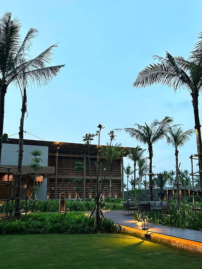 전체적으로 ‘자연 + 현대적인 감각’을 잘 섞은 인테리어라, 걸을 때마다 감탄하면서 산책했어요. 빈탄섬의 푸른 바다와 야자수 뷰는 덤!