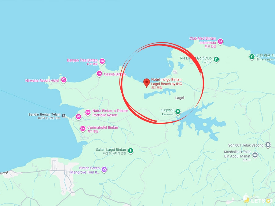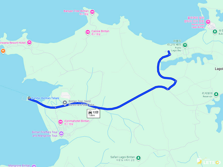 이 호텔의 장점 중 하나는 접근성이에요. 싱가포르 타나메라 페리 터미널에서 배로 약 1시간, 빈탄 페리 터미널에서 차로 10분이면 도착!