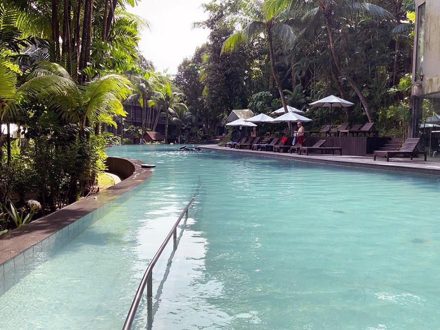 100m 길이의 길고 웅장한 수영장은 마치 숲속의 계곡처럼 꾸며져 있었어요. 물도 깨끗하고, 주변이 온통 푸른 나무로 둘러싸여 있어서 정말 자연 속에서 수영하는 기분이었죠. 🏞️