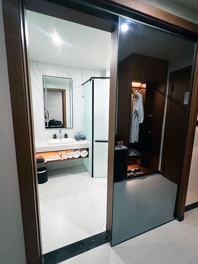 제가 묵었던 더블룸, 진짜 넓직하고 침대가 폭신폭신. 하루 종일 누워있고 싶었어요. 베개도 푹 꺼지는 타입이라 편안했고, 시트도 깨끗하게 관리돼 있더라고요.