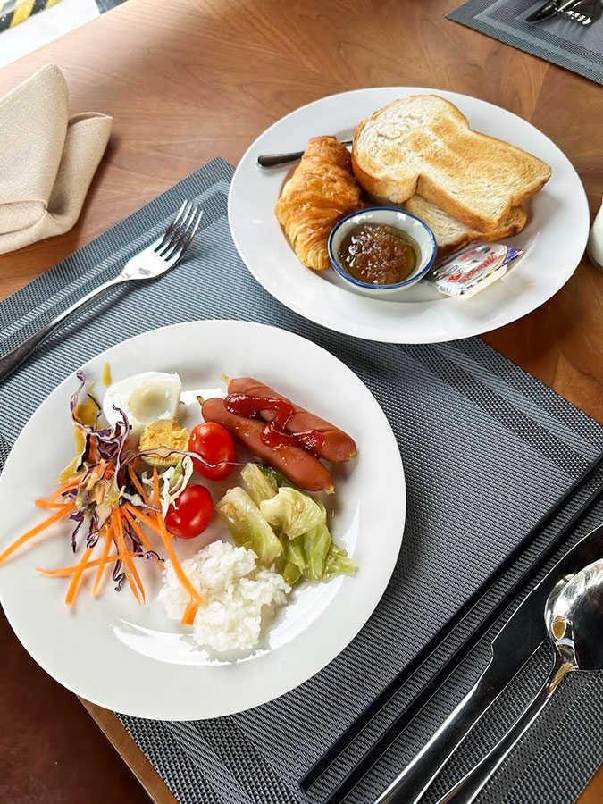 조식은 화려하진 않지만 정성 가득. 오믈렛, 신선한 과일, 커피까지 딱 필요한 메뉴만 깔끔하게 준비돼 있었어요.