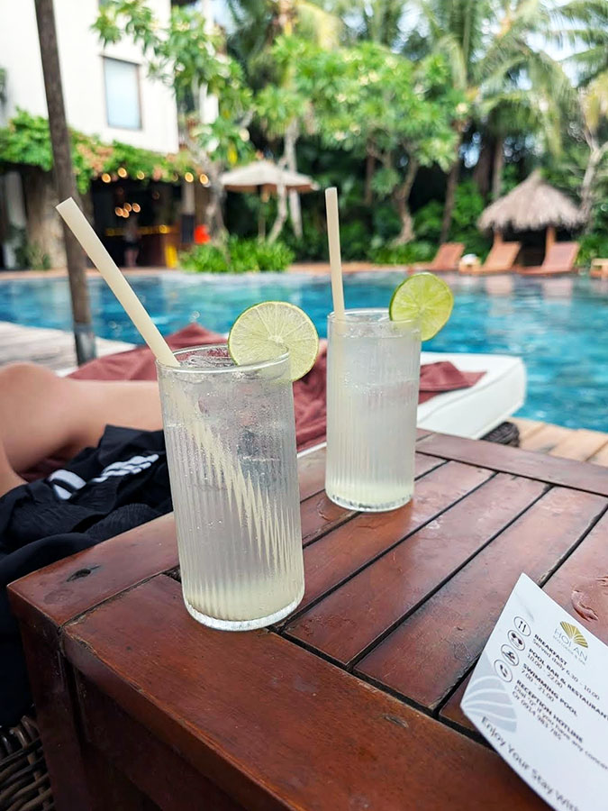 저녁엔 풀사이드에 앉아 맥주 한 잔 하면서 분위기를 즐겼어요.