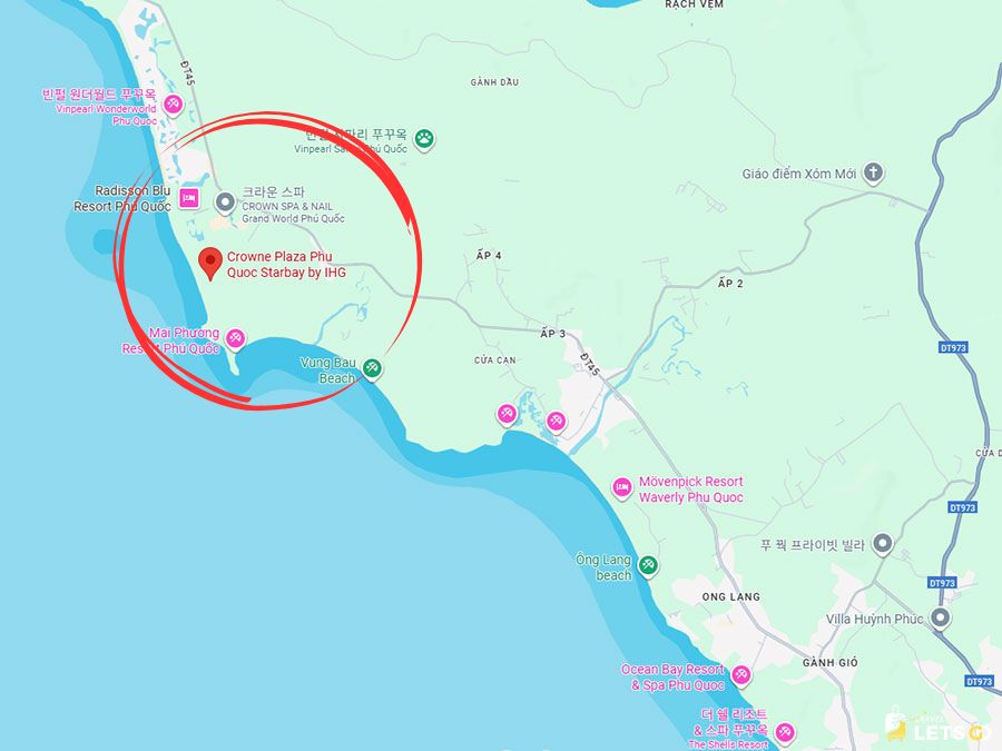 크라운 플라자 푸꾸옥은 푸꾸옥 북서쪽에 위치해 있어서 도심의 번잡함보다는 여유롭고 차분한 분위기를 즐길 수 있어요.