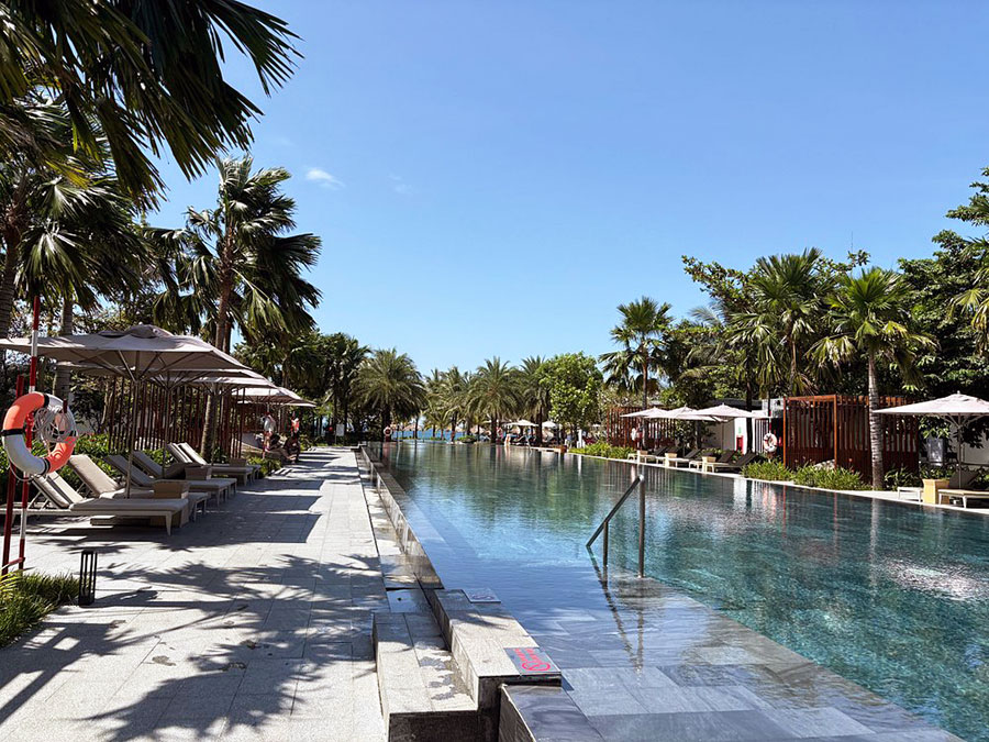 바로 앞에는 넓고 한적한 비치가 펼쳐져 있고, 호텔 전체가 굉장히 모던하고 깔끔한 느낌이에요. 제가 느끼기에는 시끌벅적한 리조트라기보다는 좀 더 ‘힐링형 호텔’ 느낌이었어요.