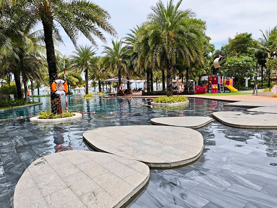 푸꾸옥 공항에서 차로 약 35~40분 정도 걸려요. 시내 중심지보다는 조금 북쪽이라서 이동은 택시나 그랩을 이용해야 합니다. 하지만 호텔 바로 앞 해변이 워낙 깨끗해서 굳이 멀리 안 나가도 힐링할 수 있더라구요.