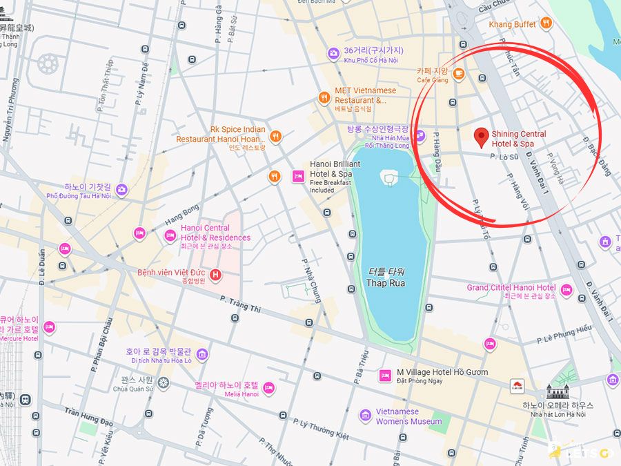 호안끼엠 호수까지 도보 5분도 안 걸리고, 구시가지 주요 관광지들은 다 걸어서 갈 수 있었습니다.