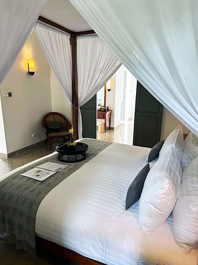 대형 리조트의 화려한 웰컴과는 또 다른, 은근히 차분한 분위기. 고풍스러운 건물과 라오스의 자연이 어우러져 “아, 진짜 잘 왔다”라는 생각이 절로 들더라고요.