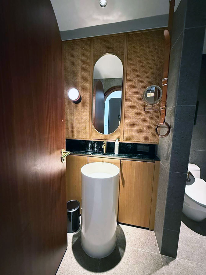 객실은 전반적으로 모던하고 깔끔했어요. 욕실도 고급스럽고 어메니티도 센스 있게 준비돼 있어서 진짜 만족했어요.