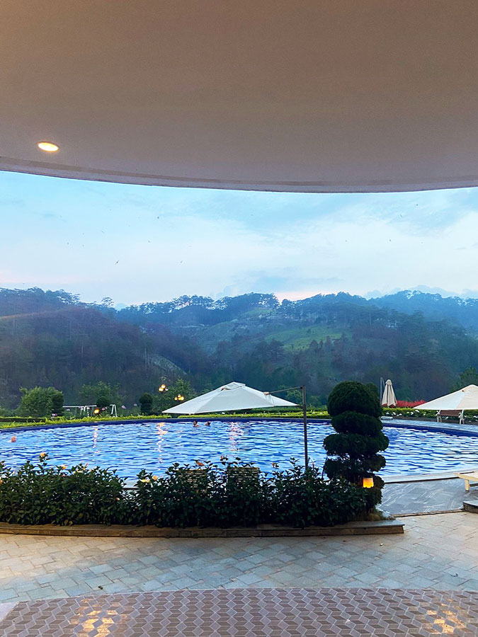 달랏은 시원한 기후라 수영을 즐기기에 날씨가 딱 좋은 건 아니지만, 리조트 수영장은 정말 그림 같았어요. 💦🏊♀️