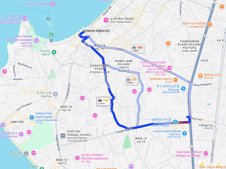 리조트가 파타야 중심지랑 가까워서 택시나 그랩 타고 금방 이동할 수 있었어요. 🚖