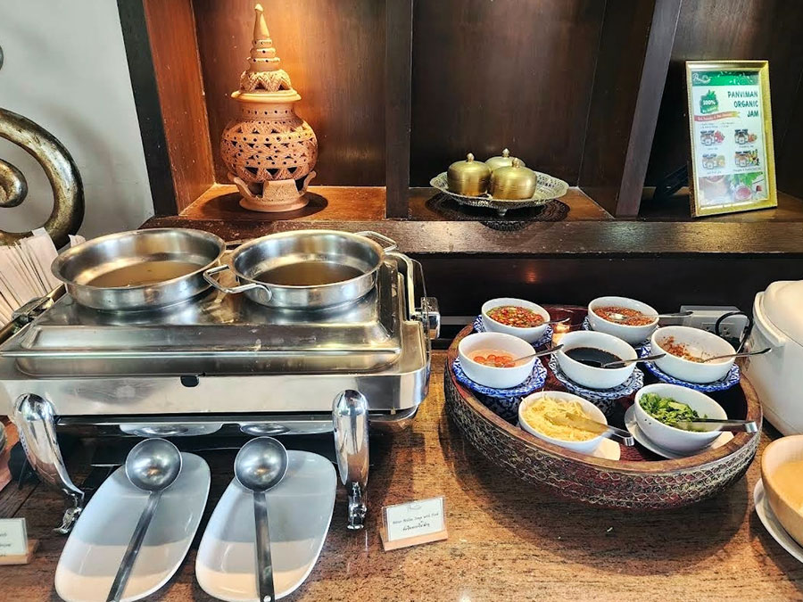 조식은 뷔페 스타일이었는데, 태국 현지 음식과 서양식 메뉴가 다양하게 준비되어 있었어요.