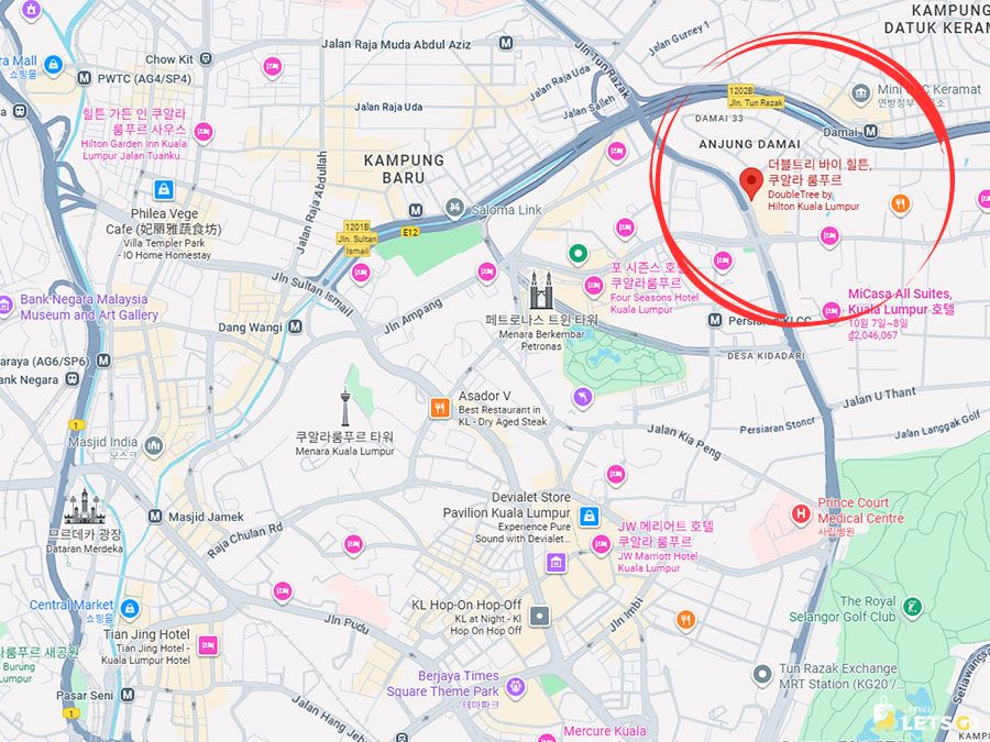 주변에 누센트럴 몰이 있어서 쇼핑하기도 좋고, 미드밸리 메가몰도 택시로 10분 거리예요. 그리고 페트로나스 트윈타워까지도 그랩으로 15분이면 갈 수 있어요!