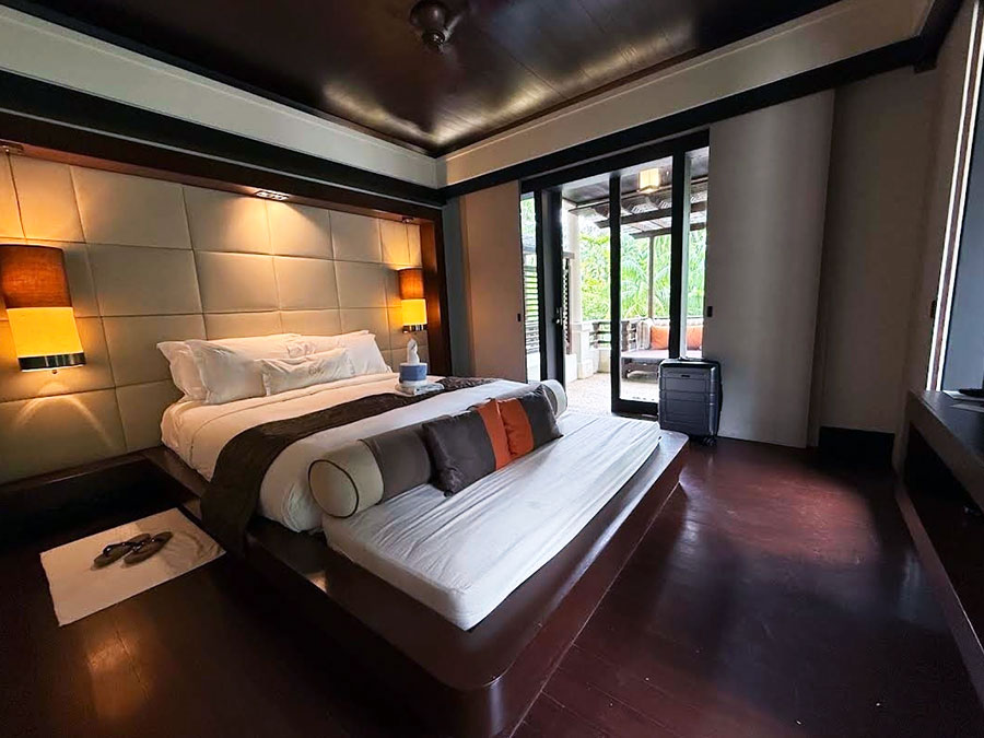 객실은 전통 말레이시아 스타일과 모던함이 섞인 분위기였어요. 나무 소재가 많이 사용돼서 따뜻한 느낌이었고, 침대는 정말 넓고 폭신했어요.