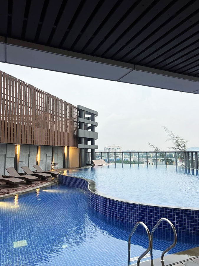 그랜드 머큐어 바탐 센터의 수영장은 루프탑이 아니라 호텔 중간층 테라스에 자리해 있어요.