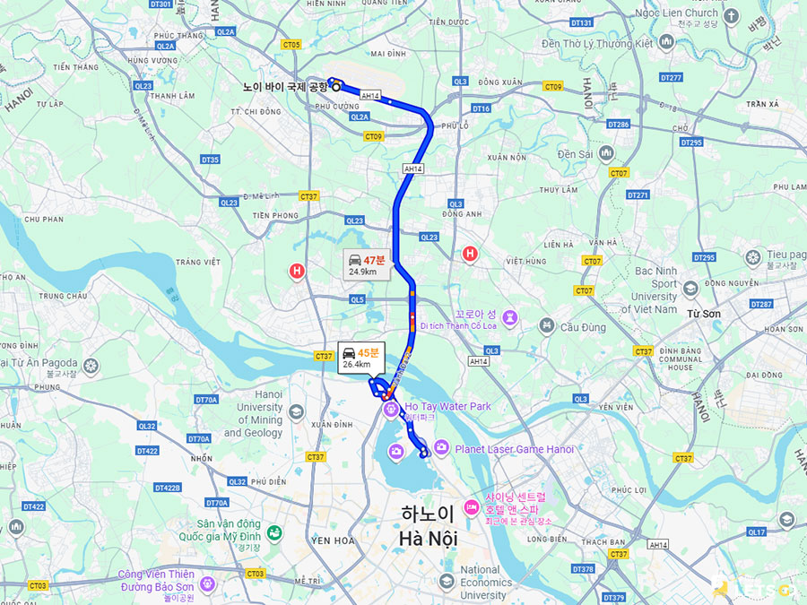 하노이 구시가지(올드쿼터)에서 차로 15분 거리예요.