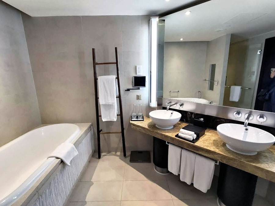 침대는 푹신하고, 욕실은 대리석에 욕조까지 완벽!