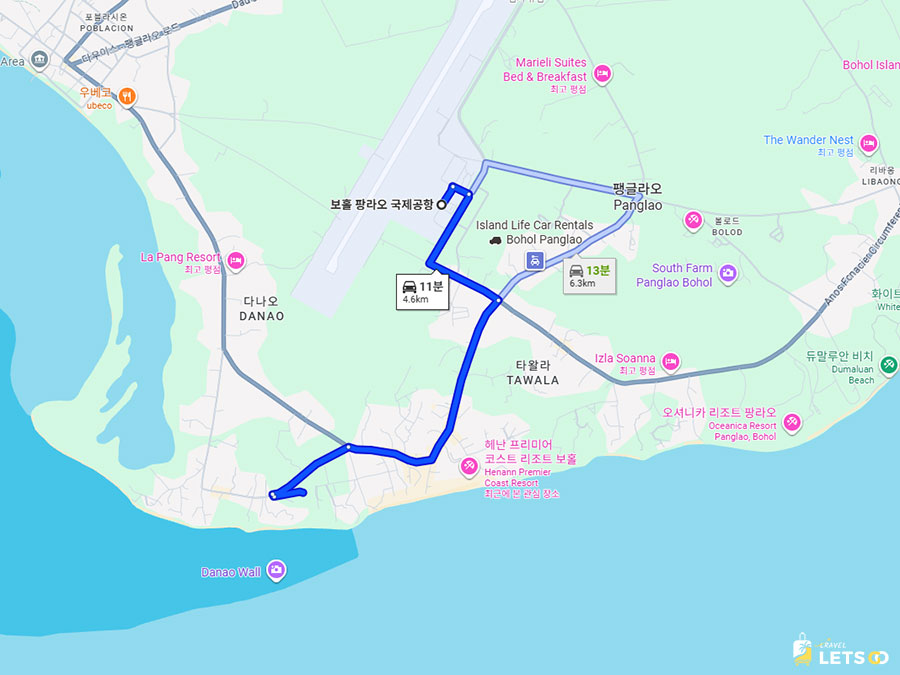 블루워터 팡라오는 팡라오 국제공항에서 차로 15분 거리 정도라 접근성도 좋아요.