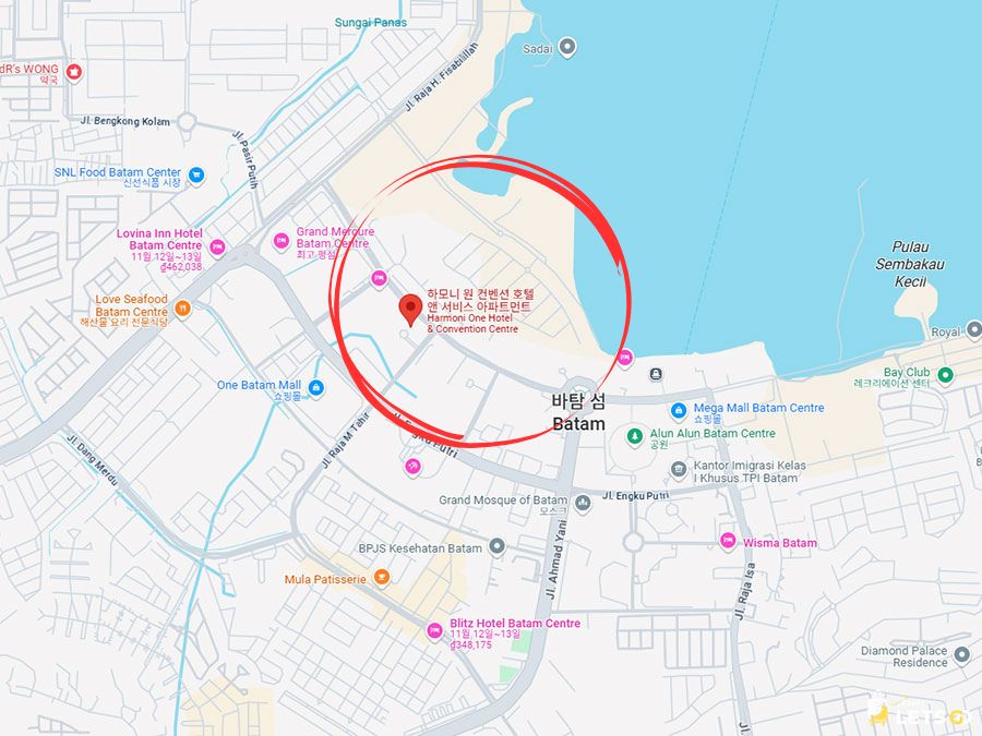 하모니 원 호텔은 바탐 중심지에 있어서 위치가 정말 좋아요.