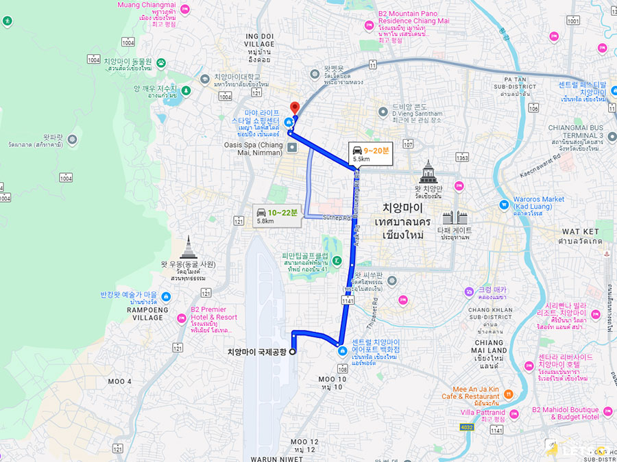 Hotel MAYU는 님만해민 지역과 마야 쇼핑몰이 거의 도보 거리여서 위치 평가가 아주 높아요.