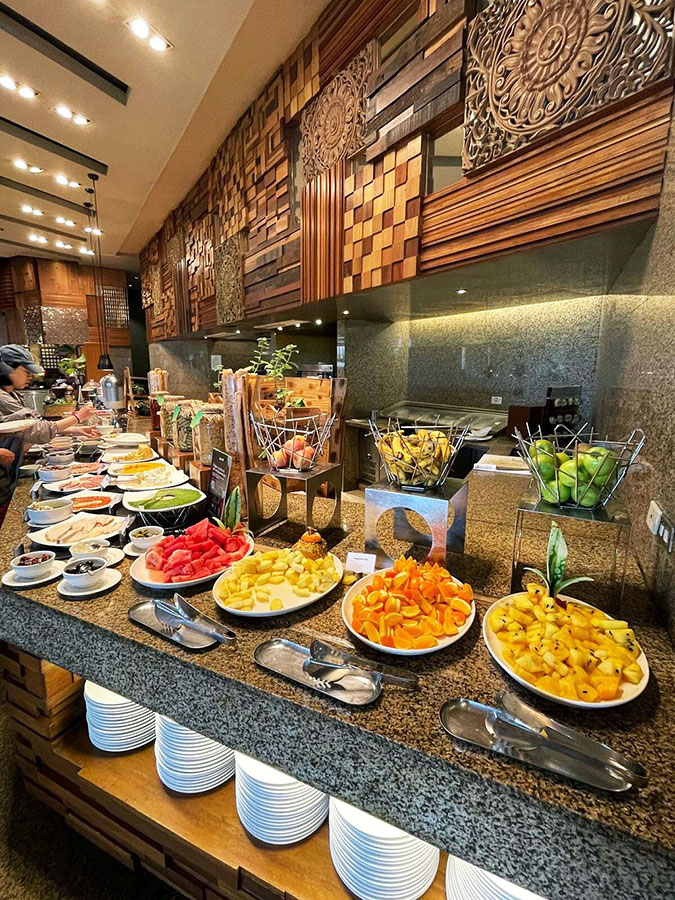 현지 음식 + 서양식 + 신선한 과일 + 빵 등 골라 먹을 수 있는 폭이 넓었고, 커피나 주스 품질도 괜찮았어요.