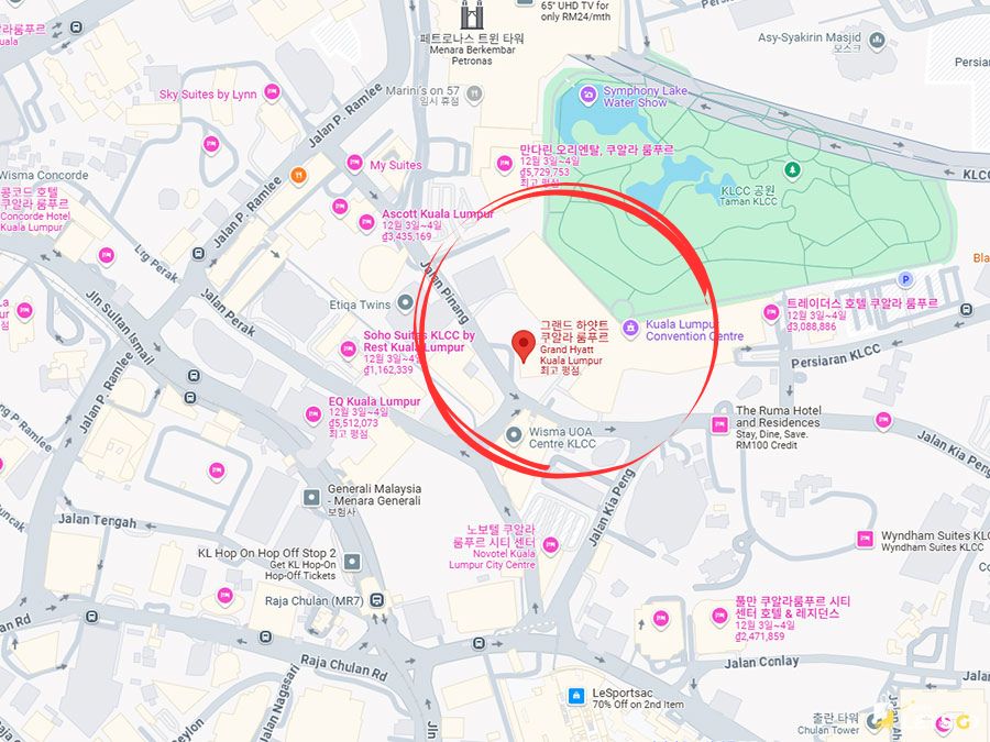 그랜드 하얏트는 쿠알라룸푸르 중심부인 KLCC (Kuala Lumpur City Centre) 바로 옆이에요.