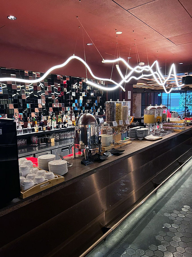 햇살이 부드럽게 들어오는 조식 공간에서