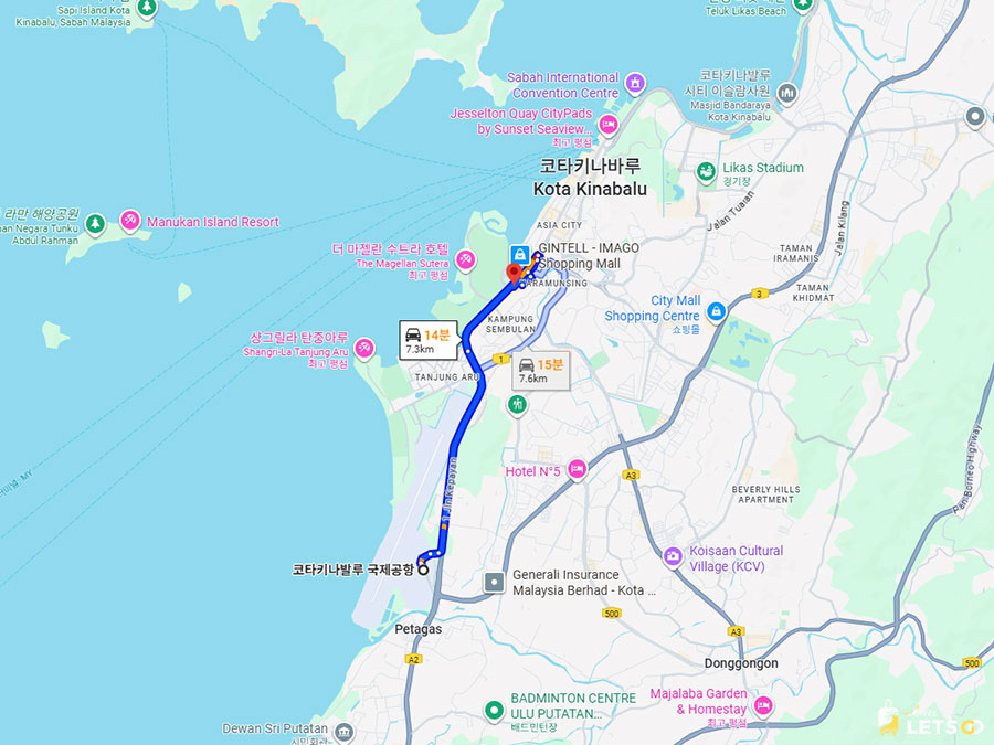 택시나 그랩으로 워터프런트, 가야 스트리트, 야시장 등 주요 관광지도 10분 이내!