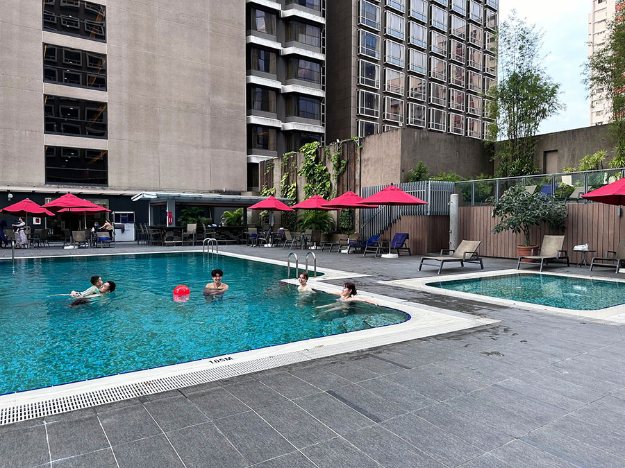 도심 호텔 감성의 깔끔한 미니 풀 느낌이에요.