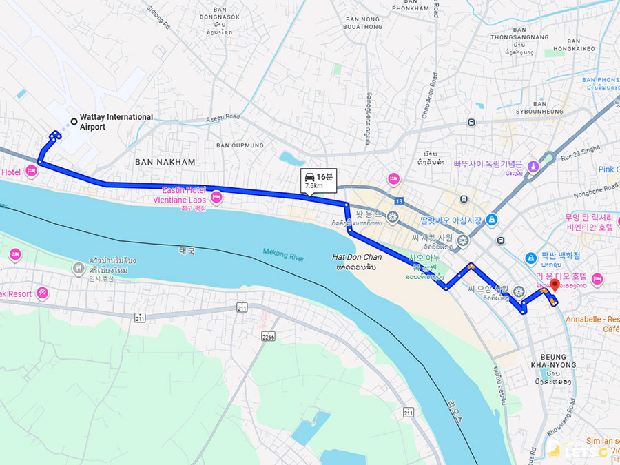 호텔은 비엔티안 중심과 아주 멀지 않은데,