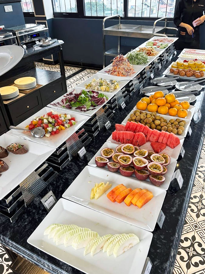 다른 호텔 조식과 차별화되는 점은 다양하고 신선한 프랑스식 베이커리였습니다. 🥐 호텔 이름에 걸맞게 갓 구워낸 크루아상과 빵 종류가 훌륭해서 커피와 함께 즐기기에 완벽했어요.