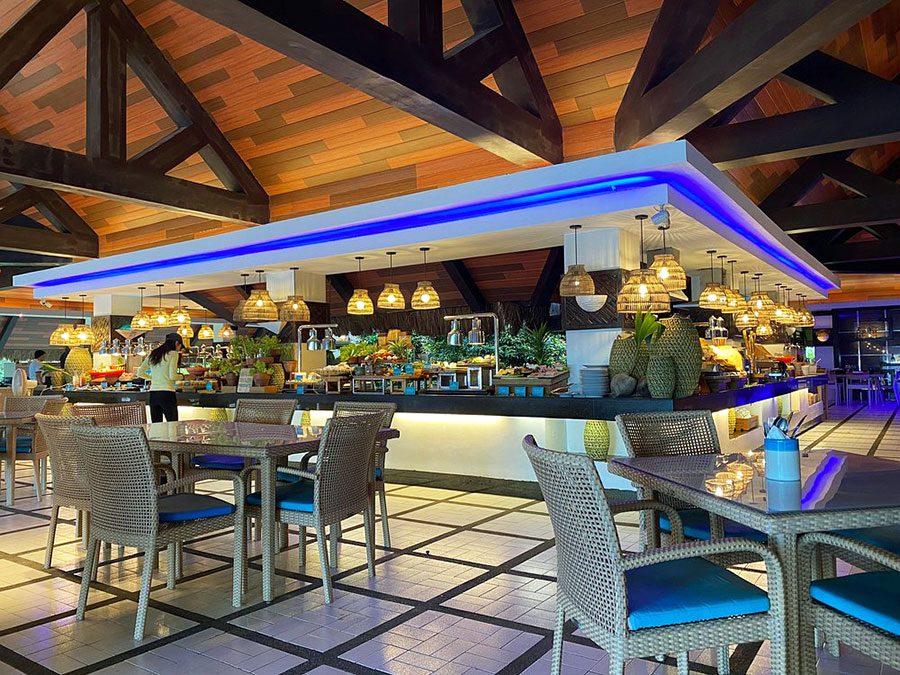 바다 보면서 먹는 아침이라니! 메뉴는 필리핀 현지식(갈릭 라이스, 롱가니사)부터 빵, 샐러드, 에그 스테이션까지 알차게 나와요.